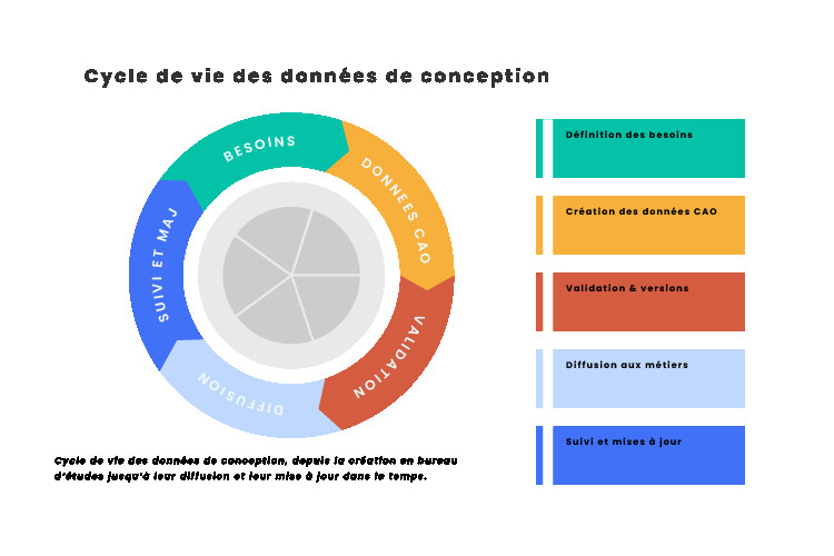 Cela signifie un référentiel central dans lequel les fichiers CAO, les plans, les nomenclatures et les documents associés sont stockés, versionnés et accessibles selon des règles claires.